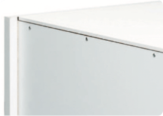 Het ophangsysteem van de hangkast is helemaal verdekt achter de rugwand. Drie dimensionaal verstelbaar met behulp van Torx schroeven. Voorzien van een extra borgschroef.